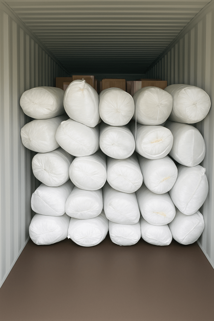 We can pack in used boxes, on request. Cardboard takes up more volume in the cntr than plastic bales.